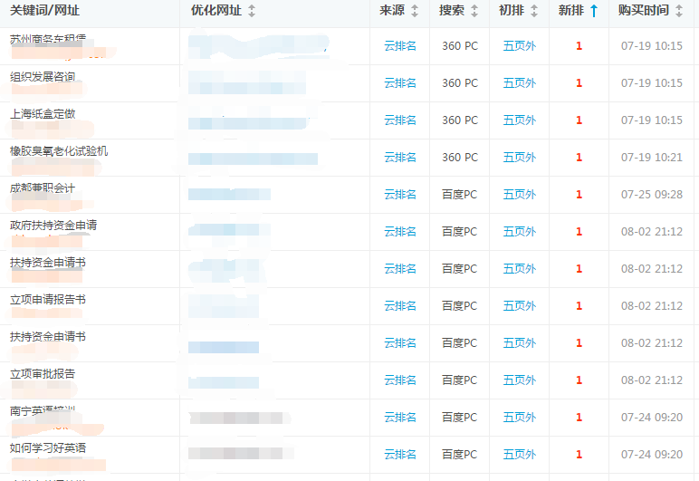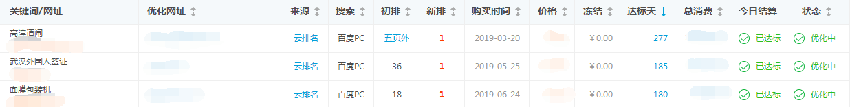 这是我们一些客户的后台,可以清楚看到每个词的排名,在首页的词才扣费,不在首页的词不扣费,性价比非常高!每一分钱都花的值!
